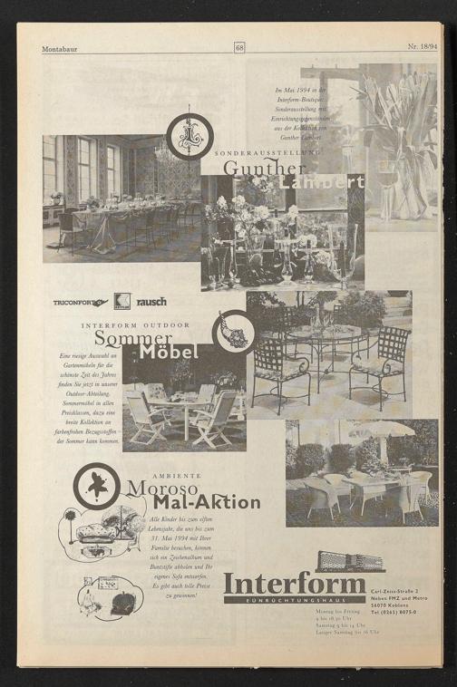Im Mai 1994 in der Interform-1’> ui’ ,/<: Sonderausstellung mit Einrichtungsgegensta