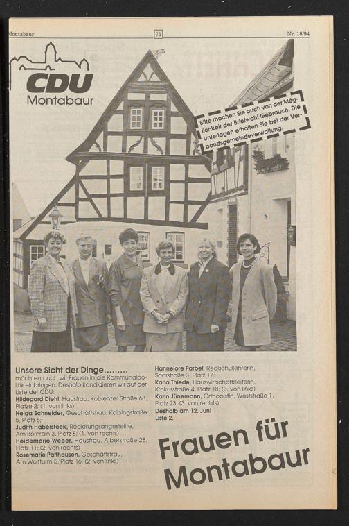 möchten auch wir Frauen in die Kommunalpolitik einbringen. Deshalb kandidieren wir auf der Liste der CDU: