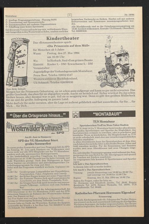 O künftige Programmgestaltung - Planung 94/95 heimischen Nachwuchs zu fordern. Hierbei soll mit anderen