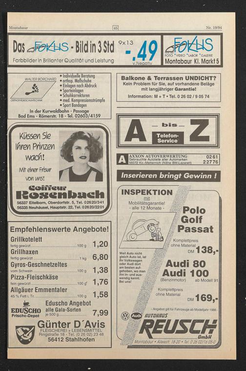 Information: M + T • Tel. 0 26 02 / 9 05 74