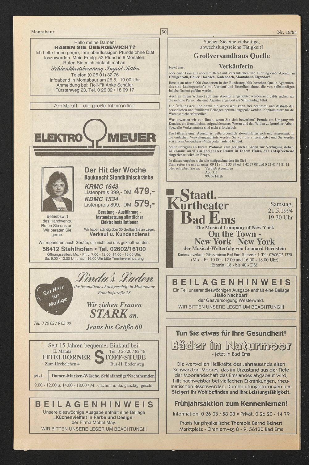 Ein Teil unserer dieswöchigen Ausgabe enthält eine Beilage „Hallo Nachbar!” der Gasversorgung Westerwald.