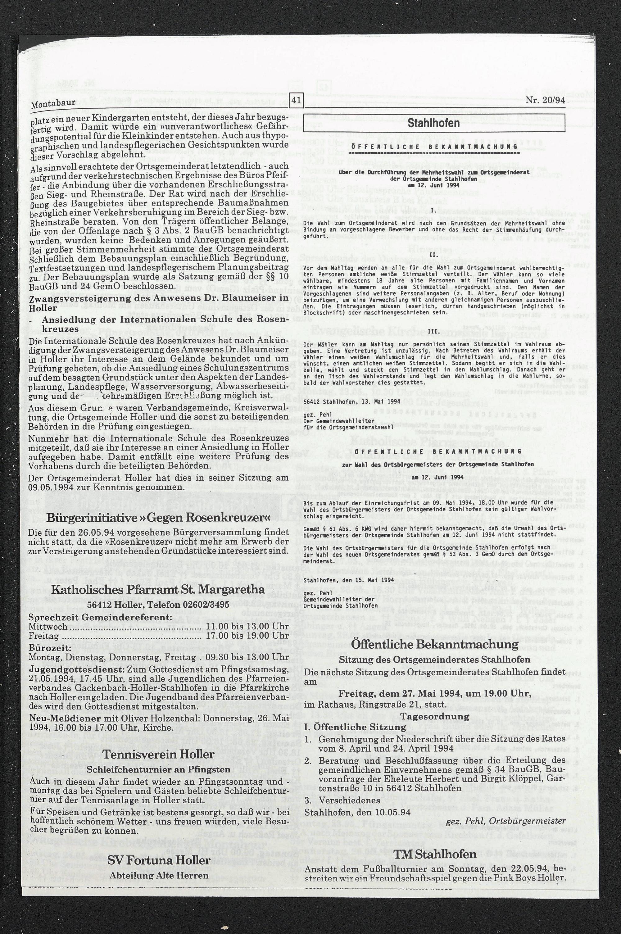 Stahlhofen, den 15. Mai 1994 gez. Pehl