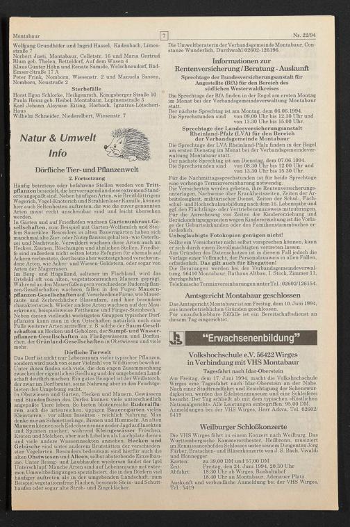 Der nächste Sprechtag ist am Montag, dem 06.06.1994.