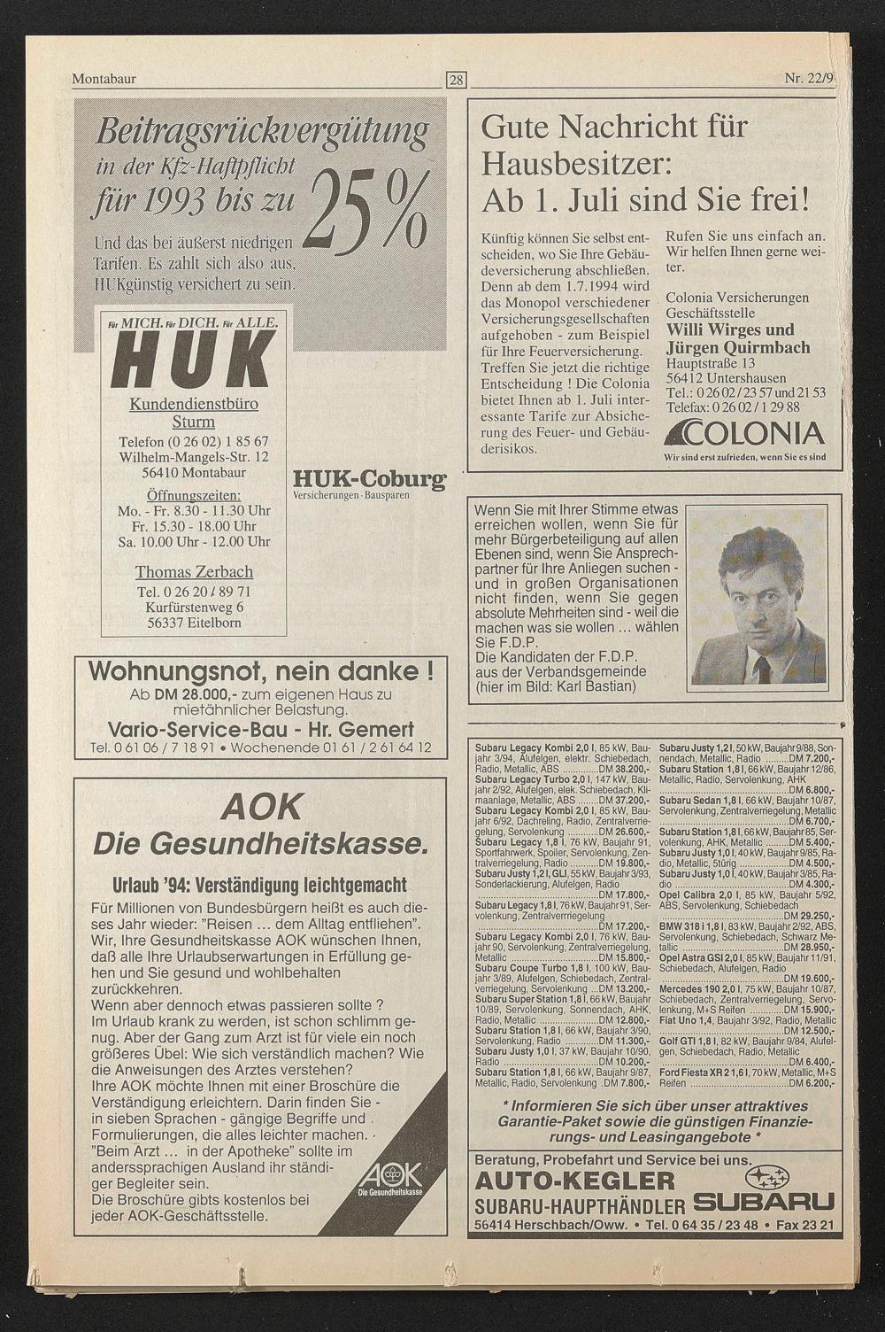Subaru Station 1,81,66 kW, Baujahr 3/90, .DM 12.500,-