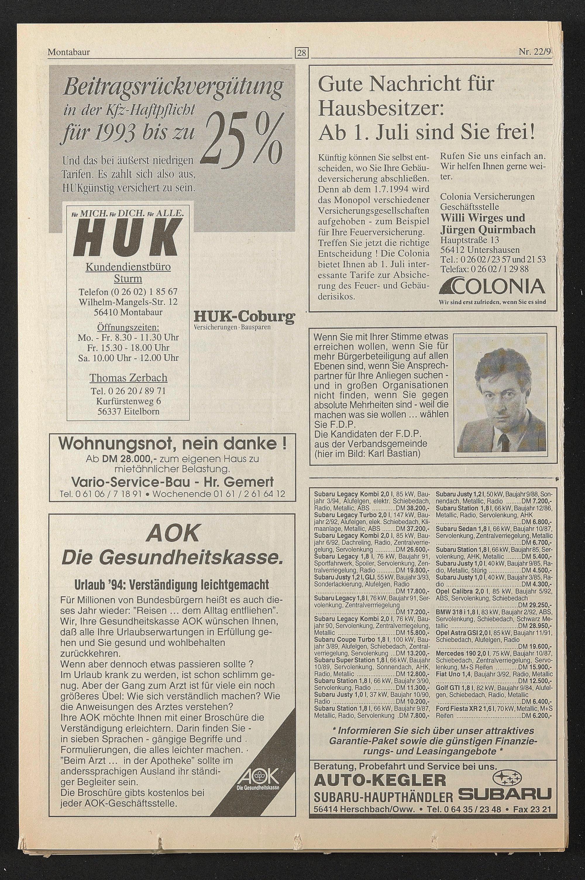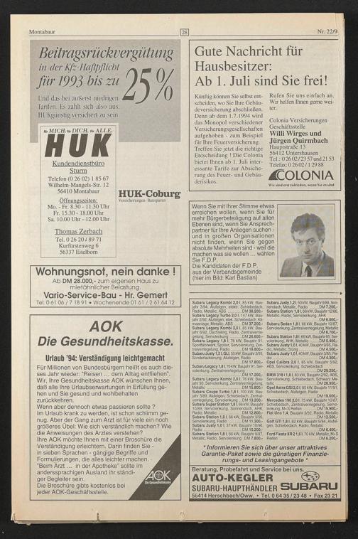 Künftig können Sie selbst entscheiden, wo Sie Ihre Gebäudeversicherung abschließen. Denn ab dem 1.7.1994 wird das Monopol verschiedener V ersicherungsgesellschaften aufgehoben - zum Beispiel für Ihre Feuerversicherung. Treffen Sie jetzt die richtige Entscheidung ! Die Colonia bietet Ihnen ab 1. Juli interessante Tarife zur Absicherung des Feuer- und Gebäuderisikos.