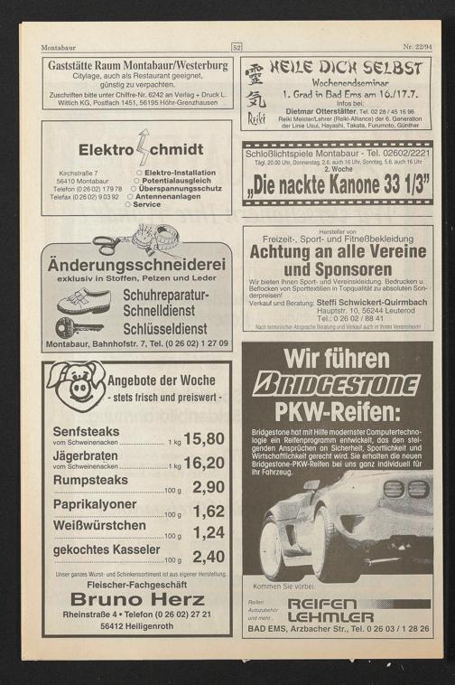 Zuschriften bitte unter Chiffre-Nr. 6242 an Verlag + Druck L. Wittich KG, Postfach 1451,56195 Höhr-Grenzhausen .