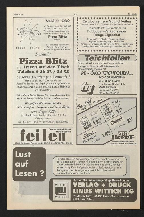56410 Montabaur, Peterstorstr. 25-27, Tel. 0 26 02/56 75»und 40 10