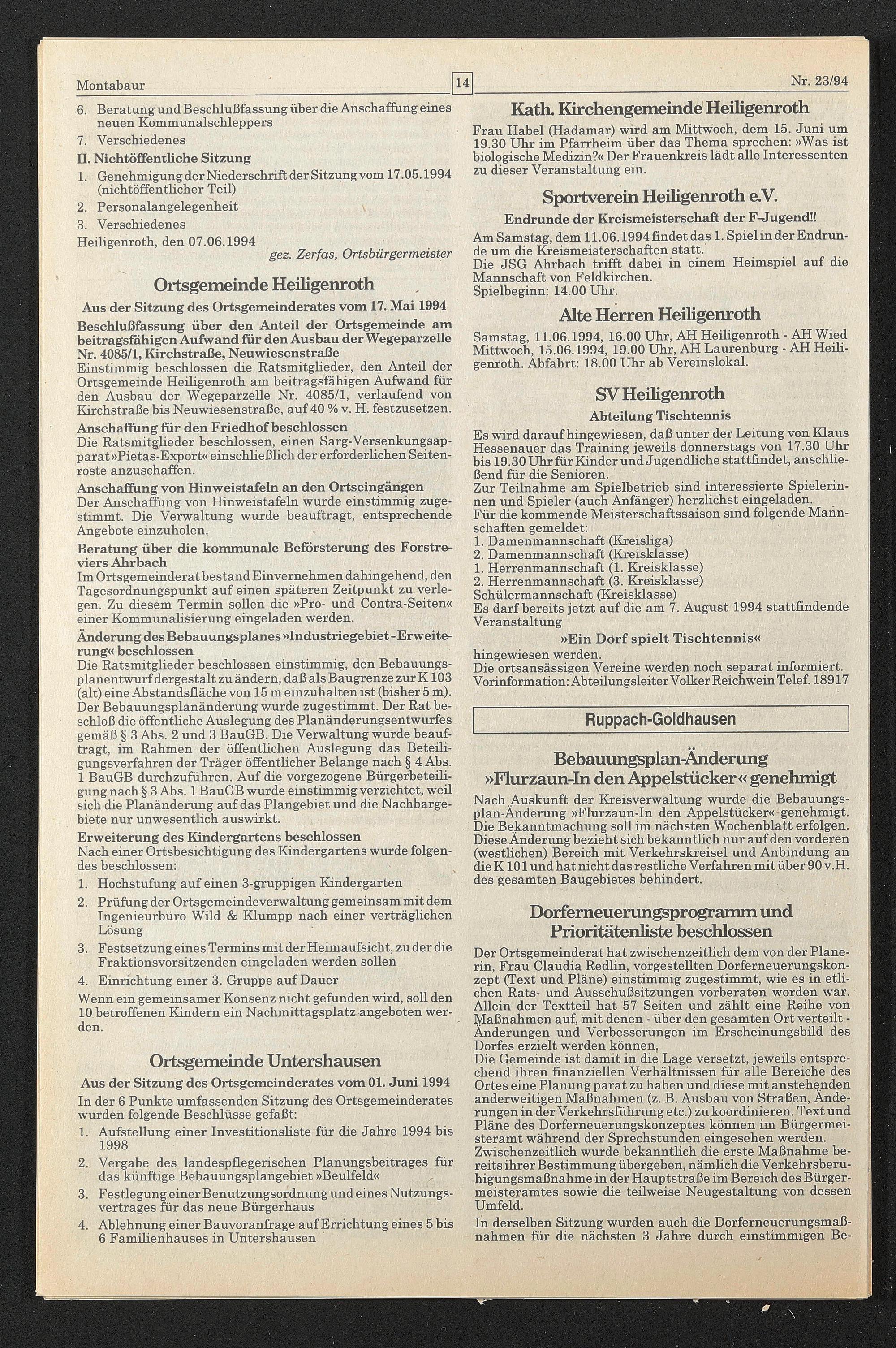 3. Verschiedenes Heiligenroth, den 07.06.1994