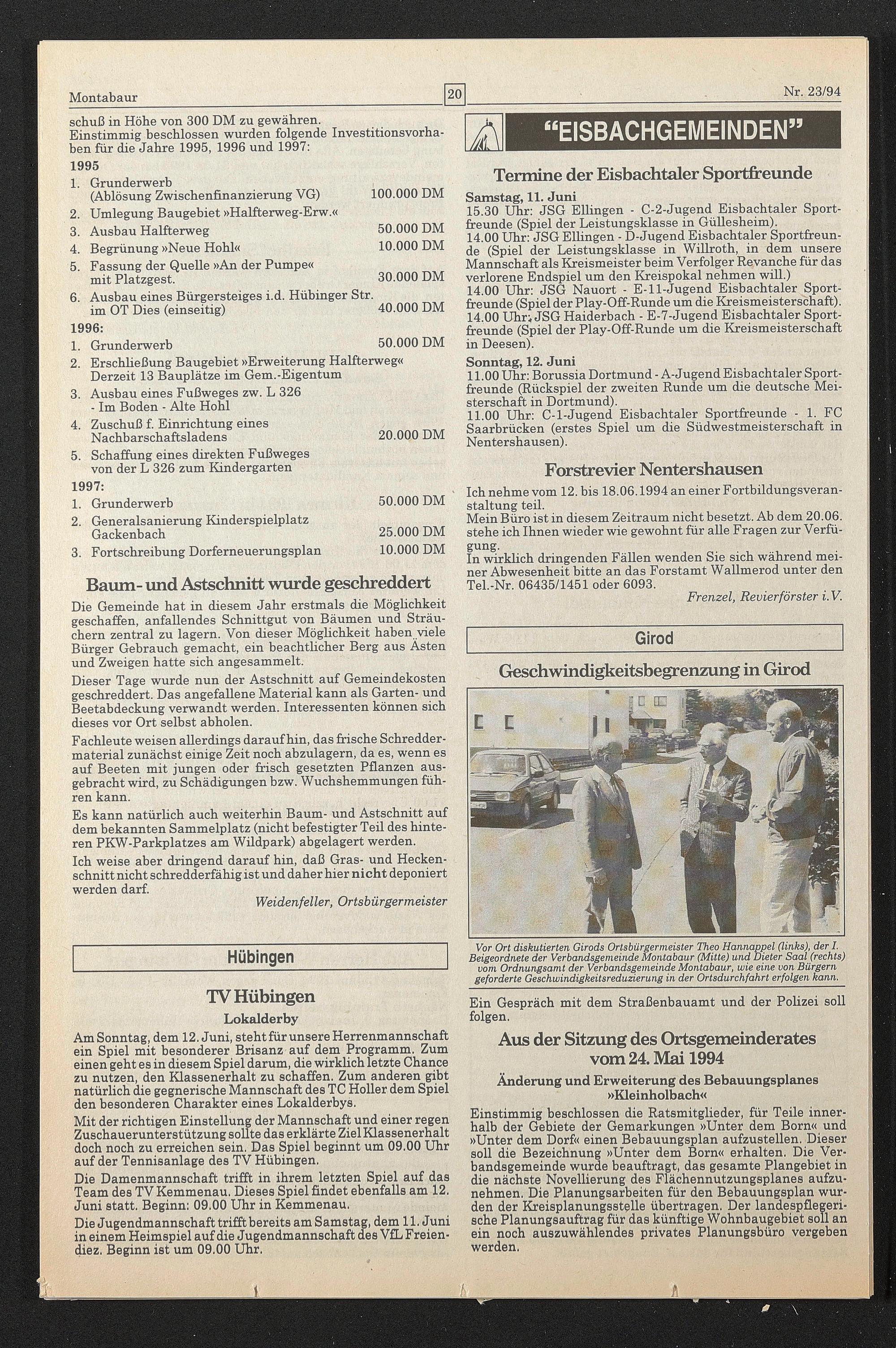 Aus der Sitzung des Ortsgemeinderates vom 24. Mai 1994