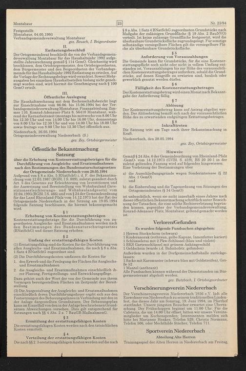 Montabaur, 04.05.1993 Verbandsgemeindeverwaltung Montabaur