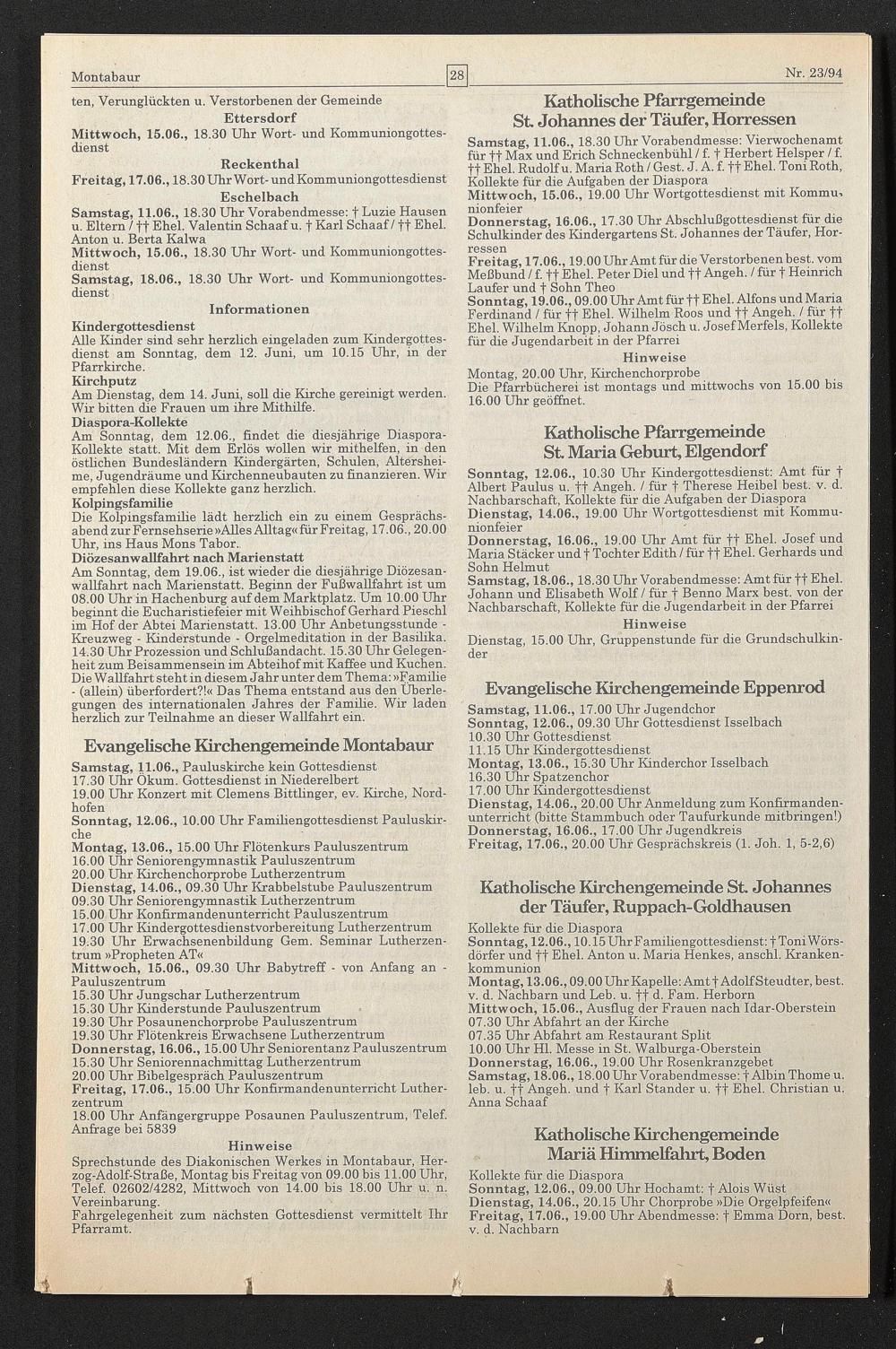 Sprechstunde des Diakonischen Werkes in Montabaur, Her- zog-Adolf-Straße, Montag bis Freitag von 09.00 bis 11.00 Uhr, Telef. 02602/4282, Mittwoch von 14.00 bis 18.00 Uhr u. n. Vereinbarung.