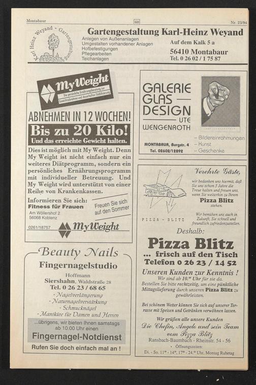 ••• frisch auf den Tisch Telefon 0 26 23 / 14 52
