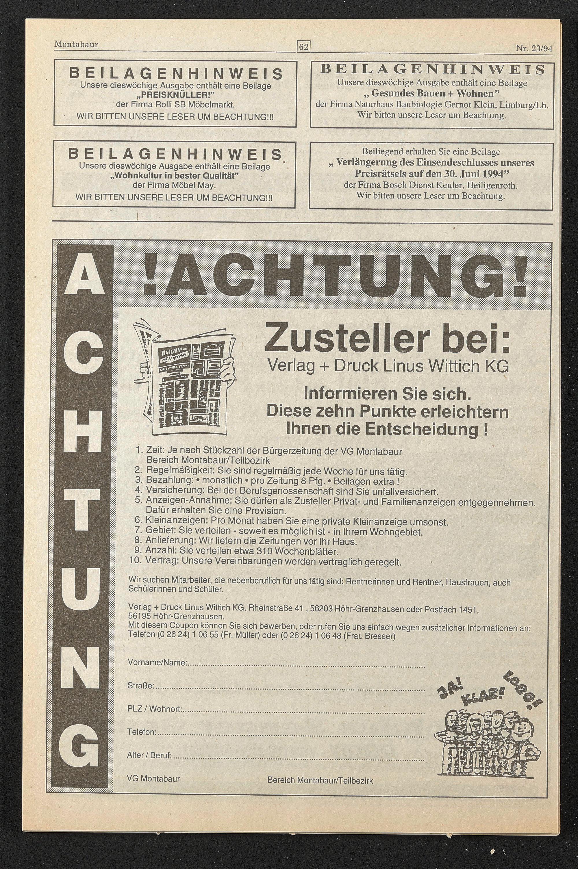 1. Zeit: Je nach Stückzahl der Bürgerzeitung der VG Montabaur Bereich Montabaur/Teilbezirk