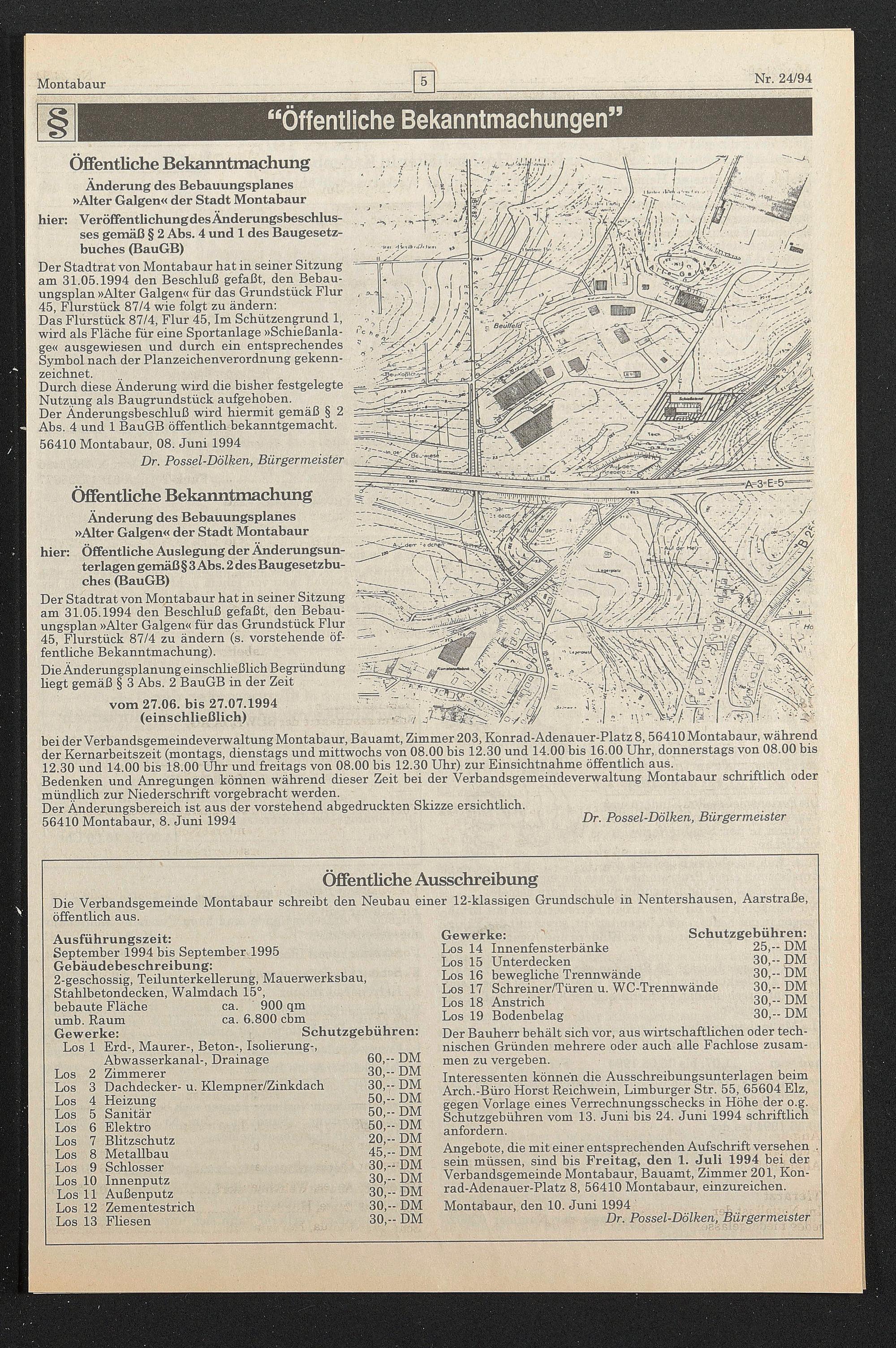 56410 Montabaur, 8. Juni 1994 Dr. Possel-Dölken, Bürgermeister