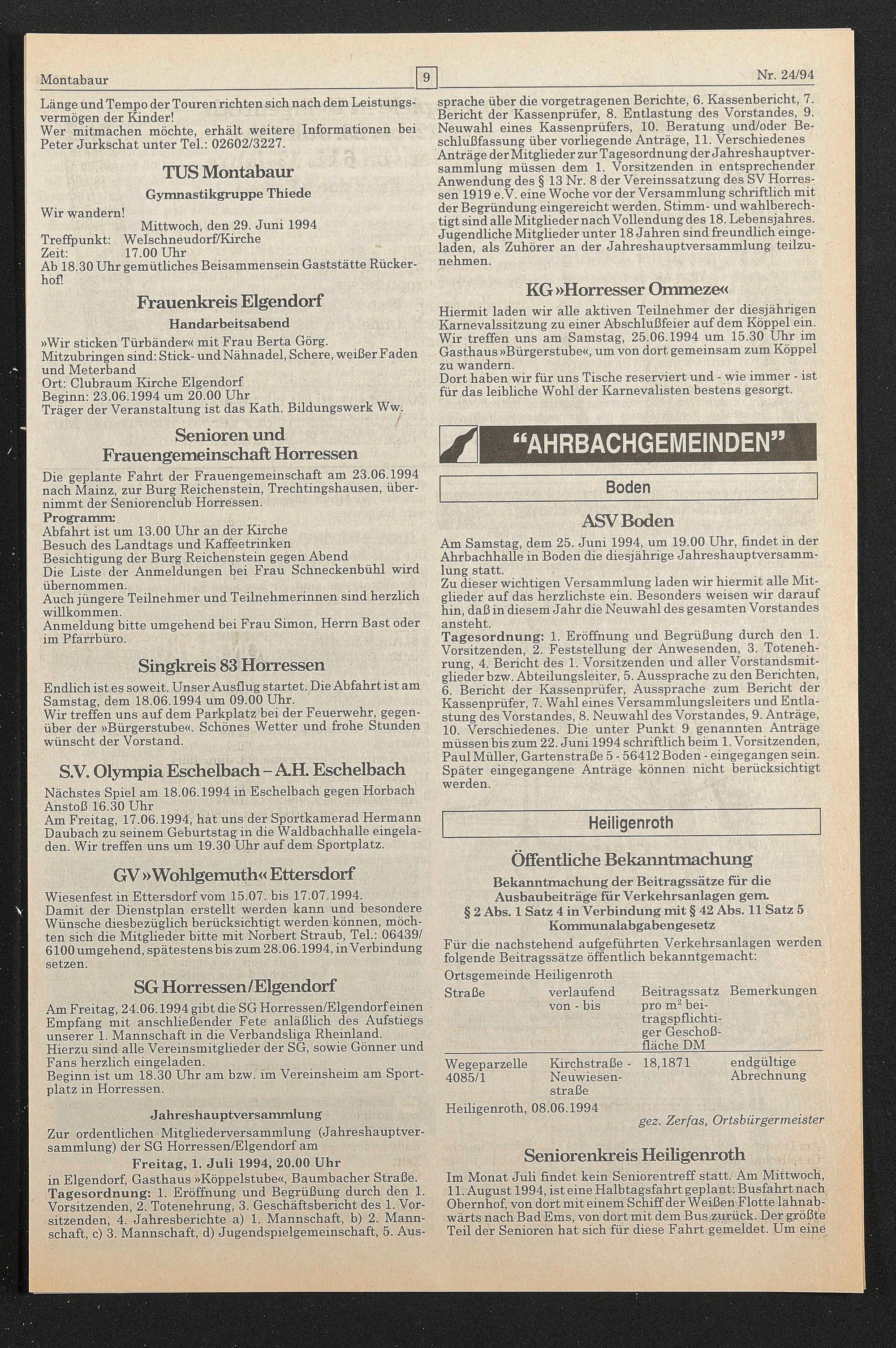 Am Samstag, dem 25. Juni 1994, um 19.00 Uhr, findet in der Ahrbachhalle in Boden die diesjährige Jahreshauptversammlung statt.