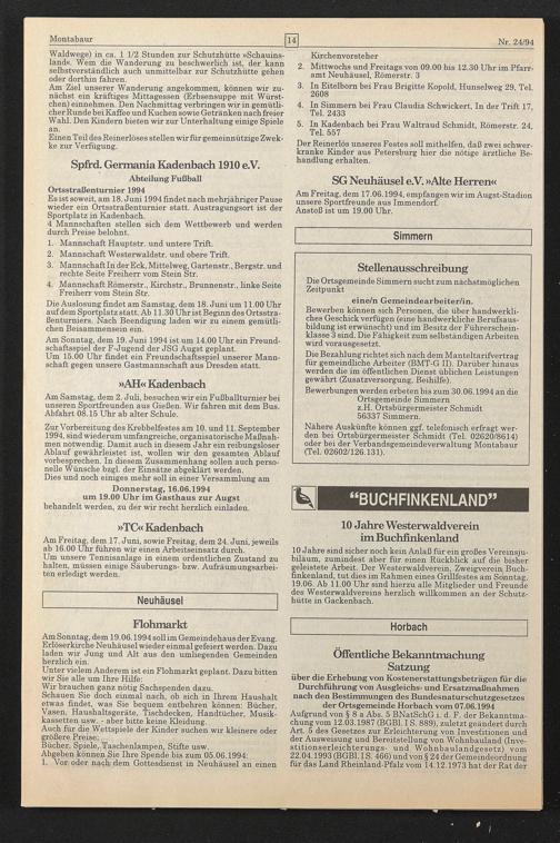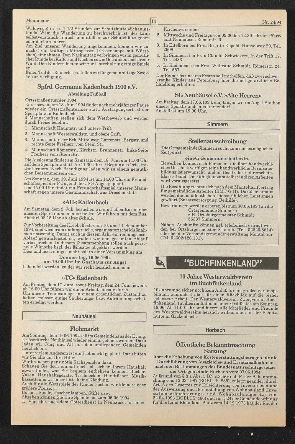 Bewerbungen werden erbeten bis zum 30.06.1994 an die Ortsgemeinde Simmern z.H. Ortsbürgermeister Schmidt 56337 Simmern.
