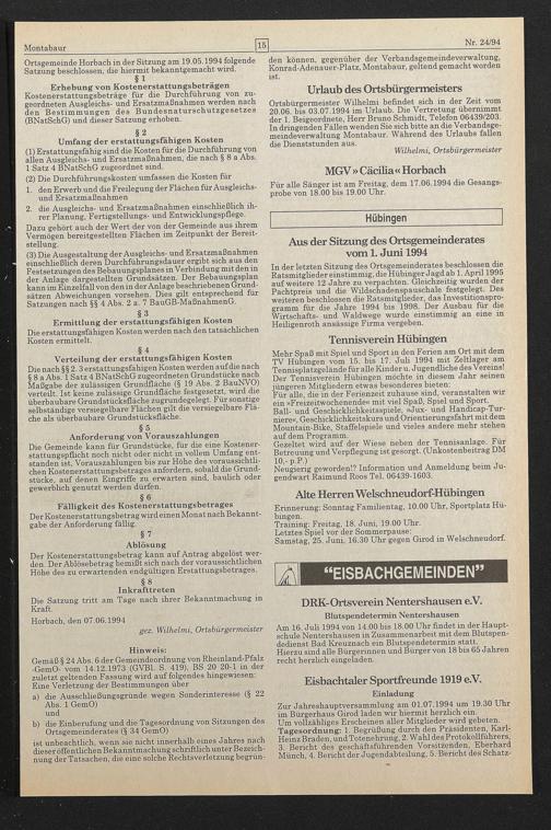 Aus der Sitzung des Ortsgemeinderates vom 1. Juni 1994