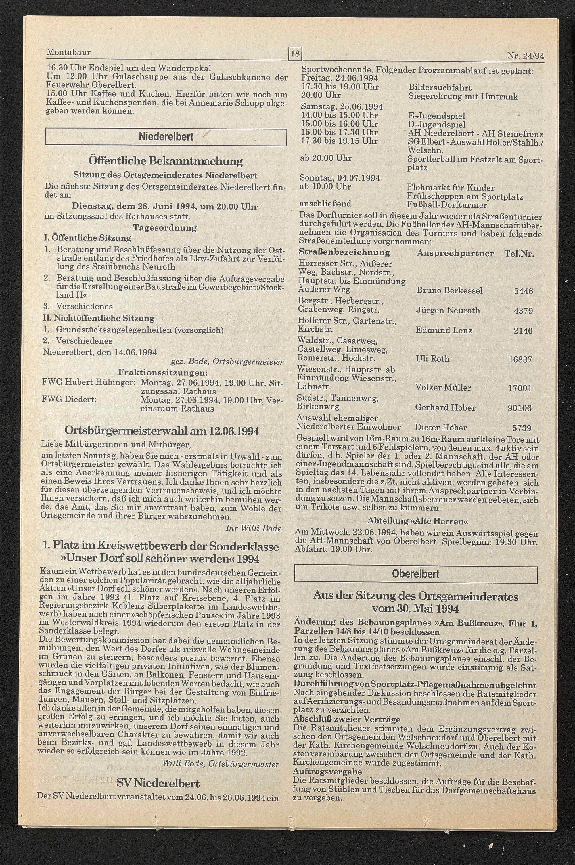 2. Verschiedenes Niederelbert, den 14.06.1994