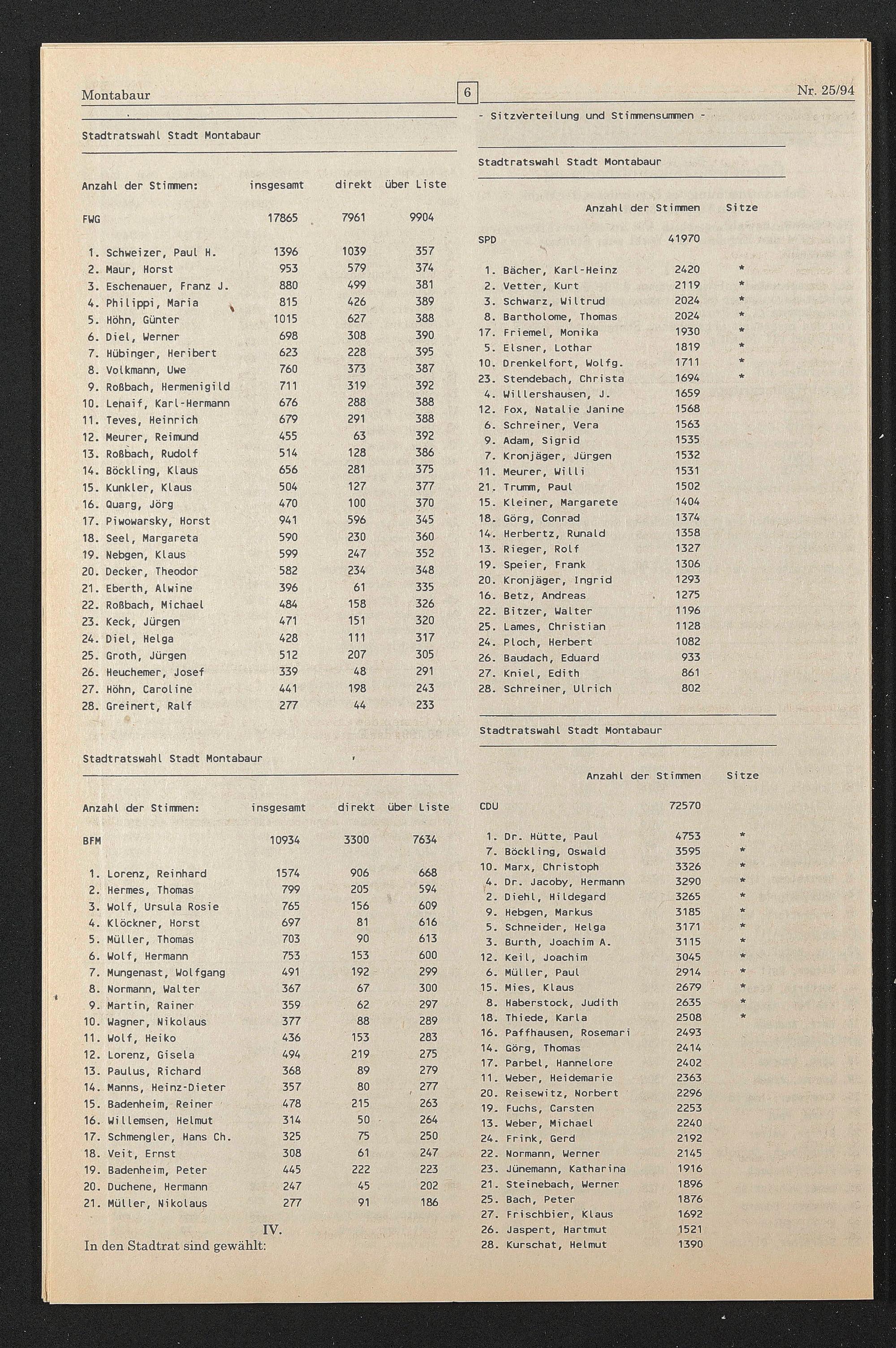 Stadtratswahl Stadt Montabaur