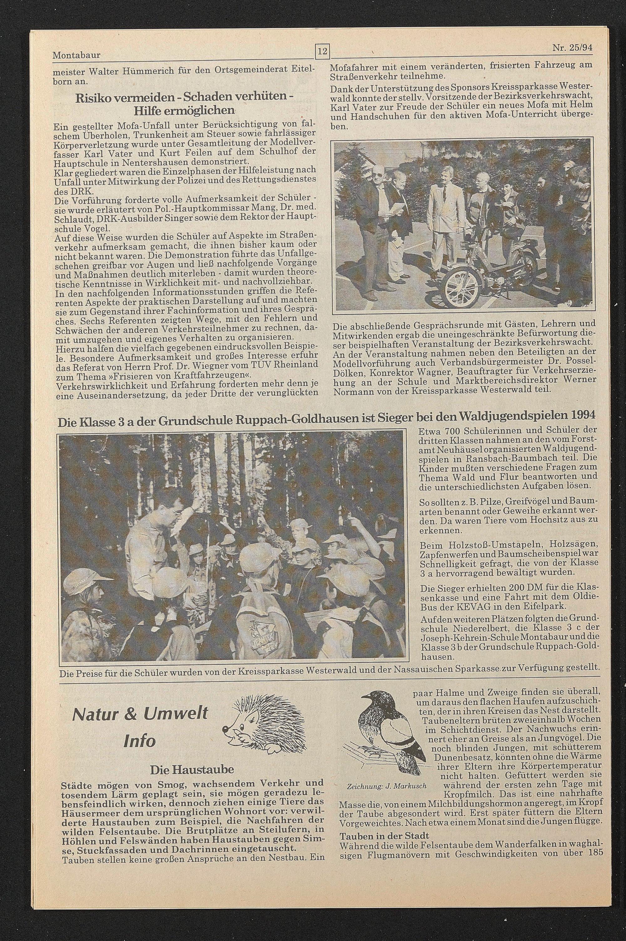Etwa 700 Schülerinnen und Schüler der dritten Klassen nahmen an den vom Forst- amt Neuhäusel organisierten Waldjugend- spielen in Ransbach-Baumbach teil. Die Kinder mußten verschiedene Fragen zum Thema Wald und Flur beantworten und die unterschiedhchsten Aufgaben lösen.