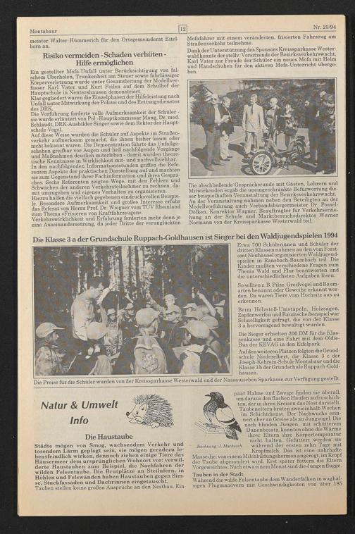 Ein gestellter Mofa-Unfall unter Berücksichtigung von falschem Überholen, Trunkenheit am Steuer sowie fahrlässiger Körperverletzung wurde unter Gesamtleitung der Modellverfasser Karl Vater und Kurt Feilen auf dem Schulhof der Hauptschule in Nentershausen demonstriert.