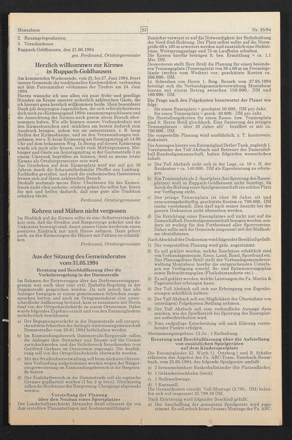 Aus der Sitzung des Gemeinderates vom 31.05.1994