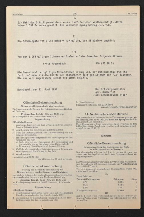 Simmern/Neuhäusel, den 21.06.1994