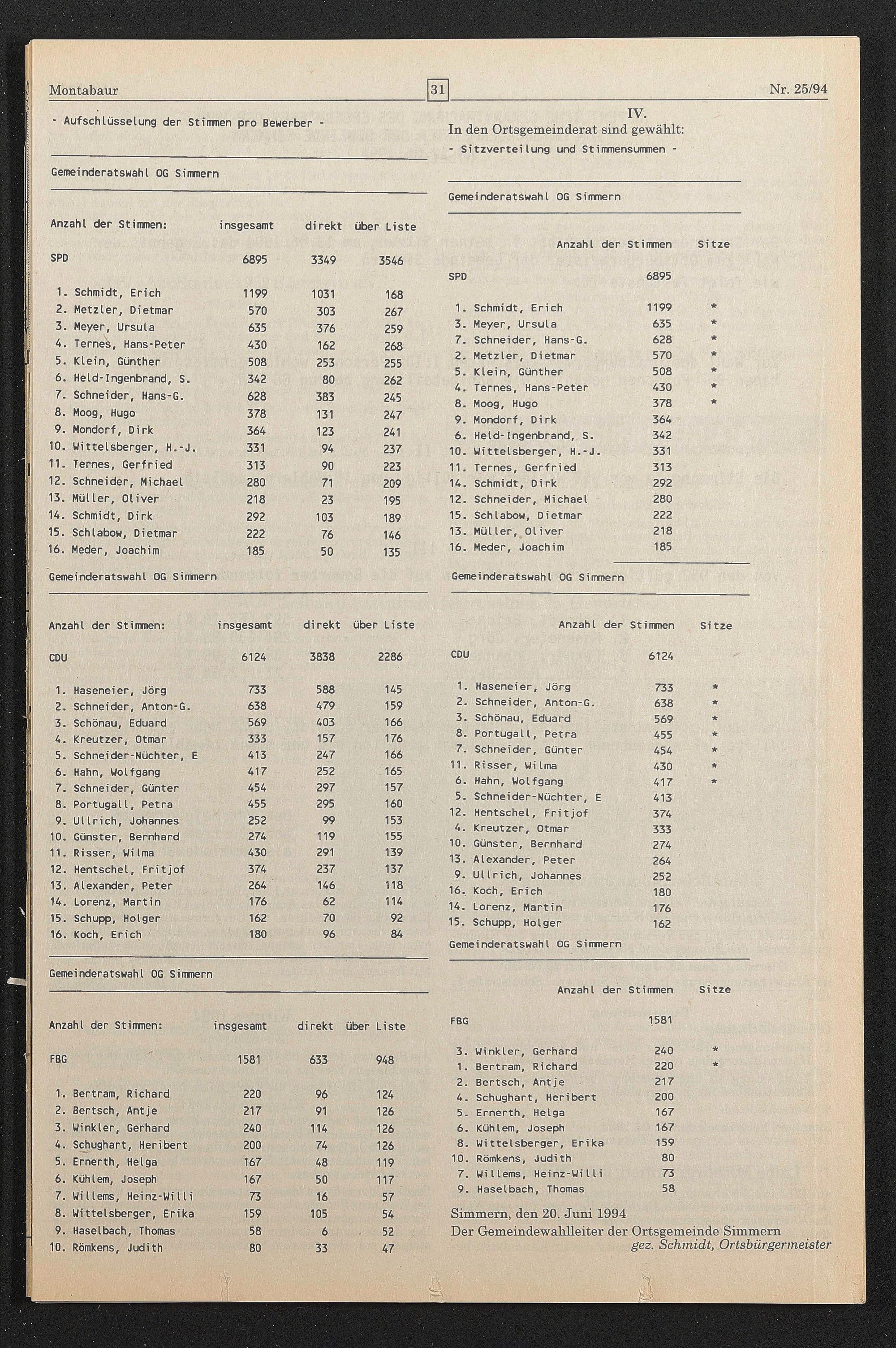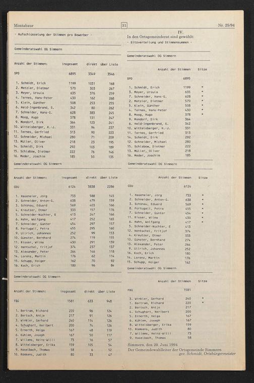 Der Gemeindewahlleiter der Ortsgemeinde Simmern