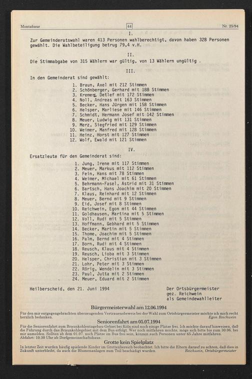Heilberscheid, den 21. Juni 1994 Der Ortsbürgermeister