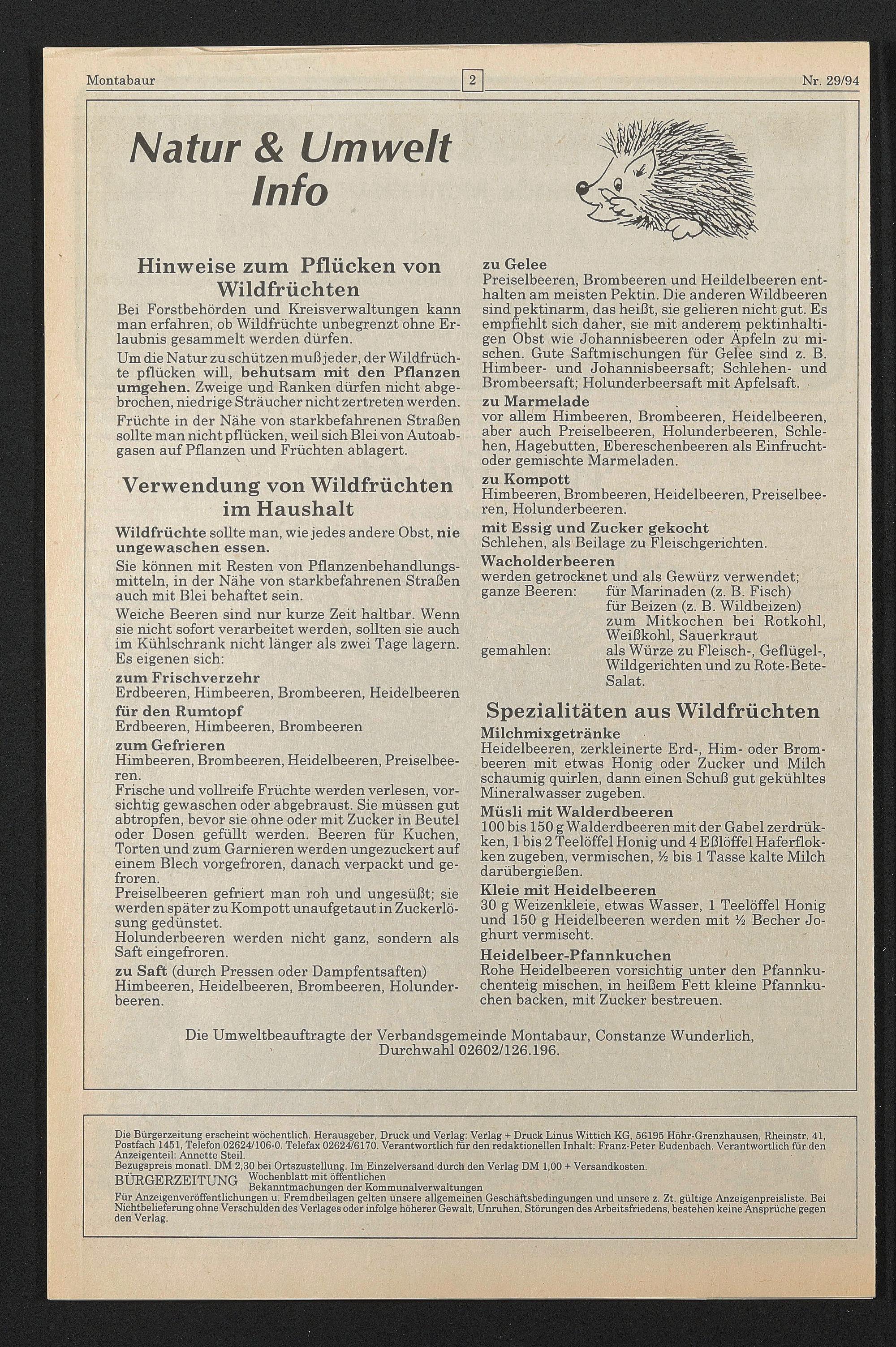 Die Bürgerzeitung erscheint wöchentlich. Herausgeber, Druck und Verlag: Verlag + Druck Linus Wittich KG, 56195 Höhr-Grenzhausen, Rheinstr. 41, Postfach 1461, Telefon 02624/106-0. Telefax 02624/6170. Verantwortlich für den redaktionellen Inhalt: Franz-Peter Eudenbach. Verantwortlich für den Anzeigenteil: Annette Steil.