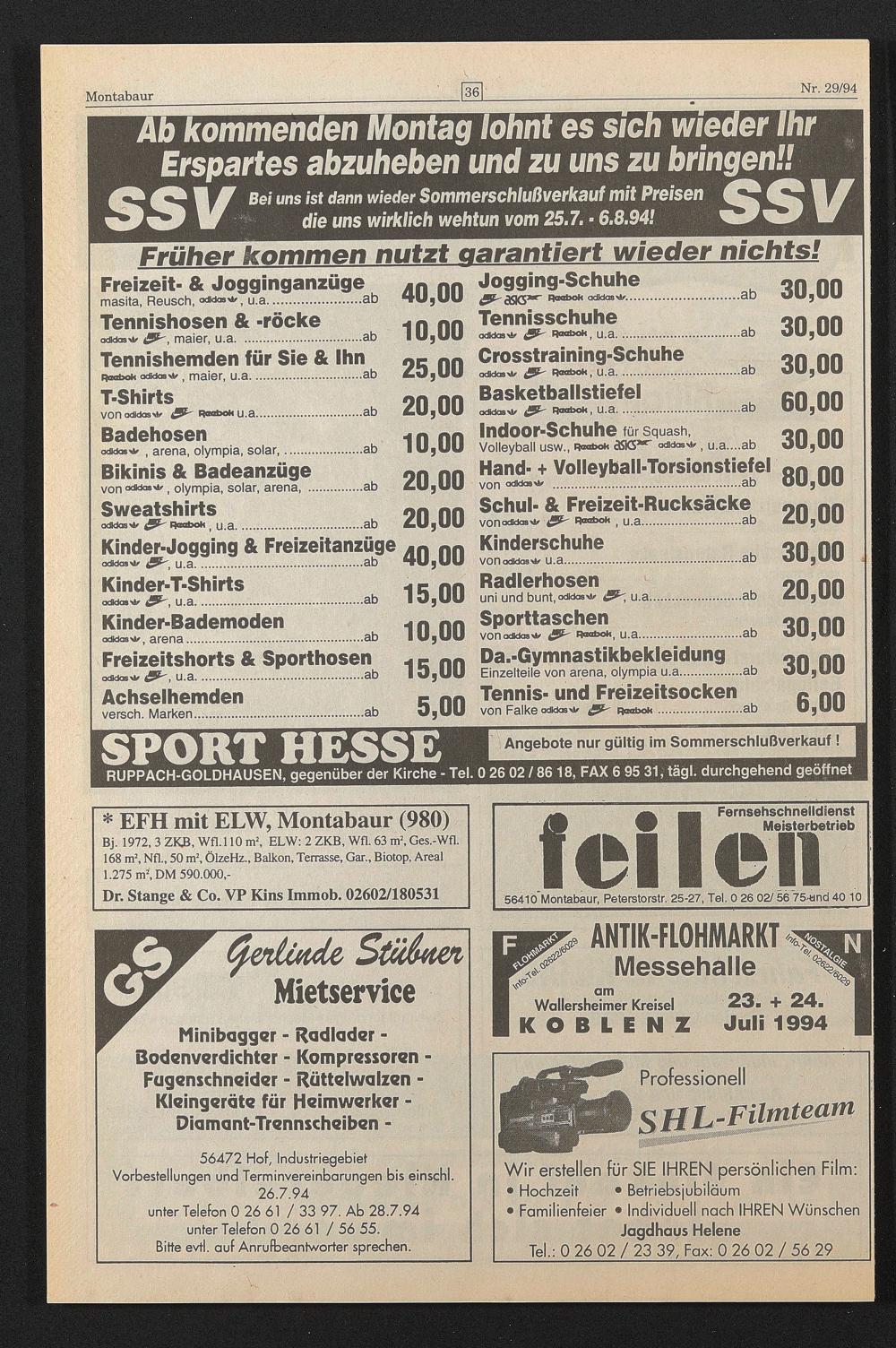 unter Telefon 0 26 61 / 33 97. Ab 28.7.94 unter Telefon 0 26 61 / 56 55.
