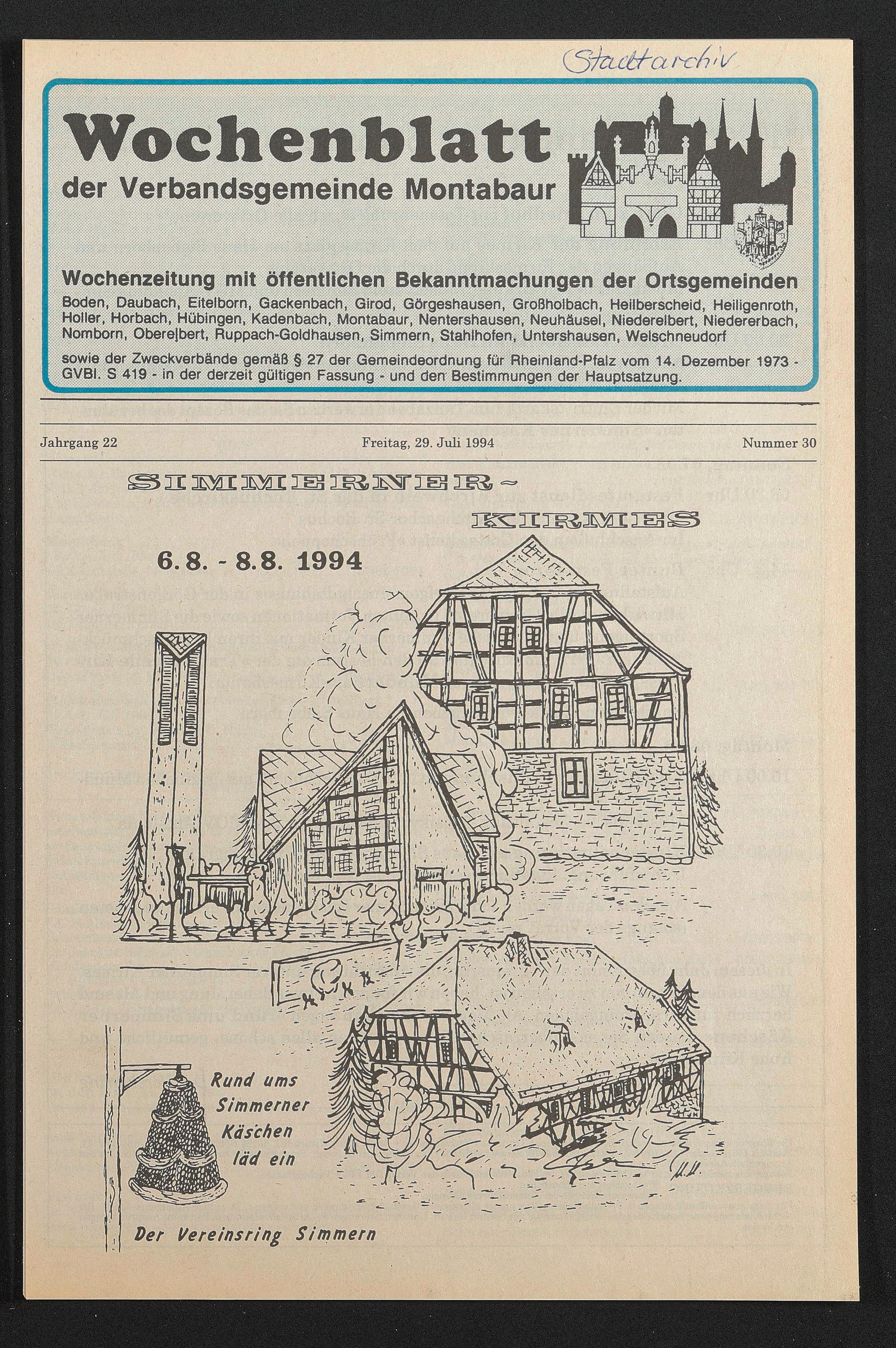 Wochenzeitung mit öffentlichen Bekanntmachungen der Ortsgemeinden