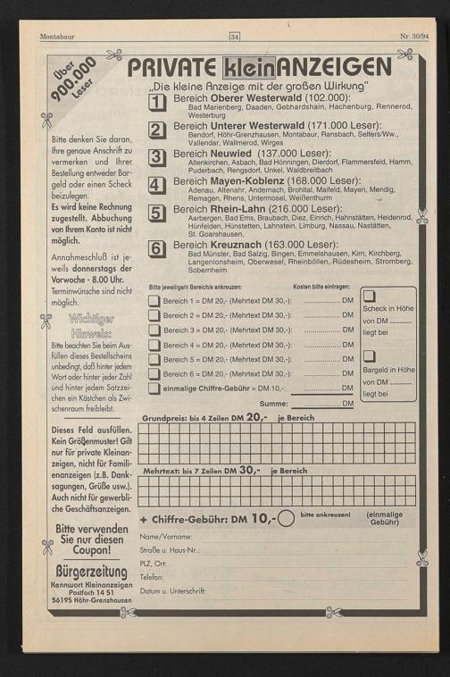 Kennwort Kleinanzeigen Postfach 14 51 56195 Höhr-Grenzhousen