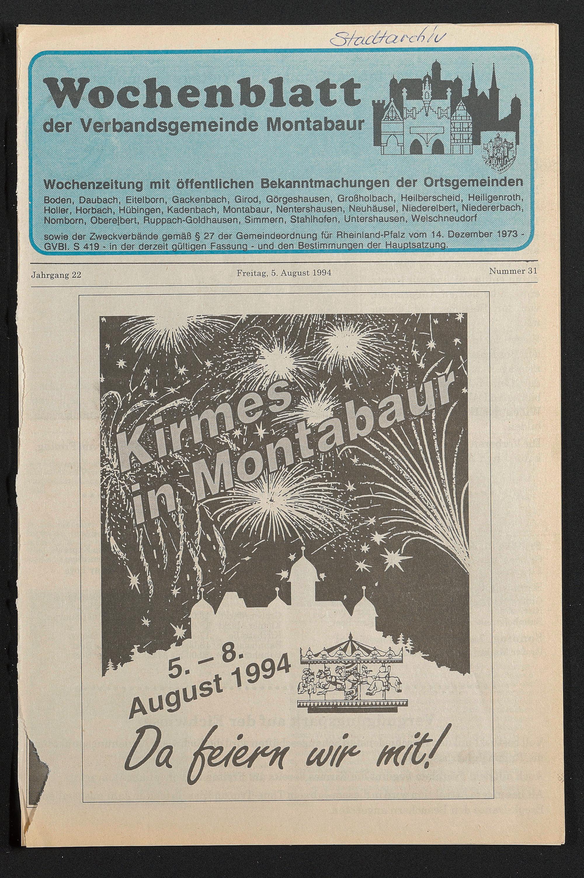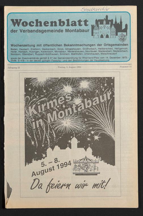 Wochenzeitung mit öffentlichen Bekanntmachungen der Ortsgemeinden