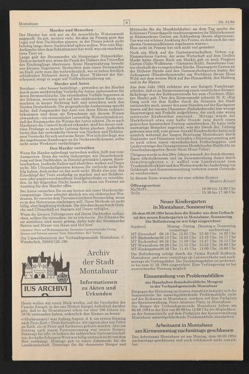 Ab dem 08.08.1994 besuchen die Kinder aus dem Gelbachtal den neuen Kindergarten in Montabaur, Sonnenring. Die Beförderung ist wie folgt eingerichtet: Stadtteil Montag - Freitag Dienstag u. Donnerstag