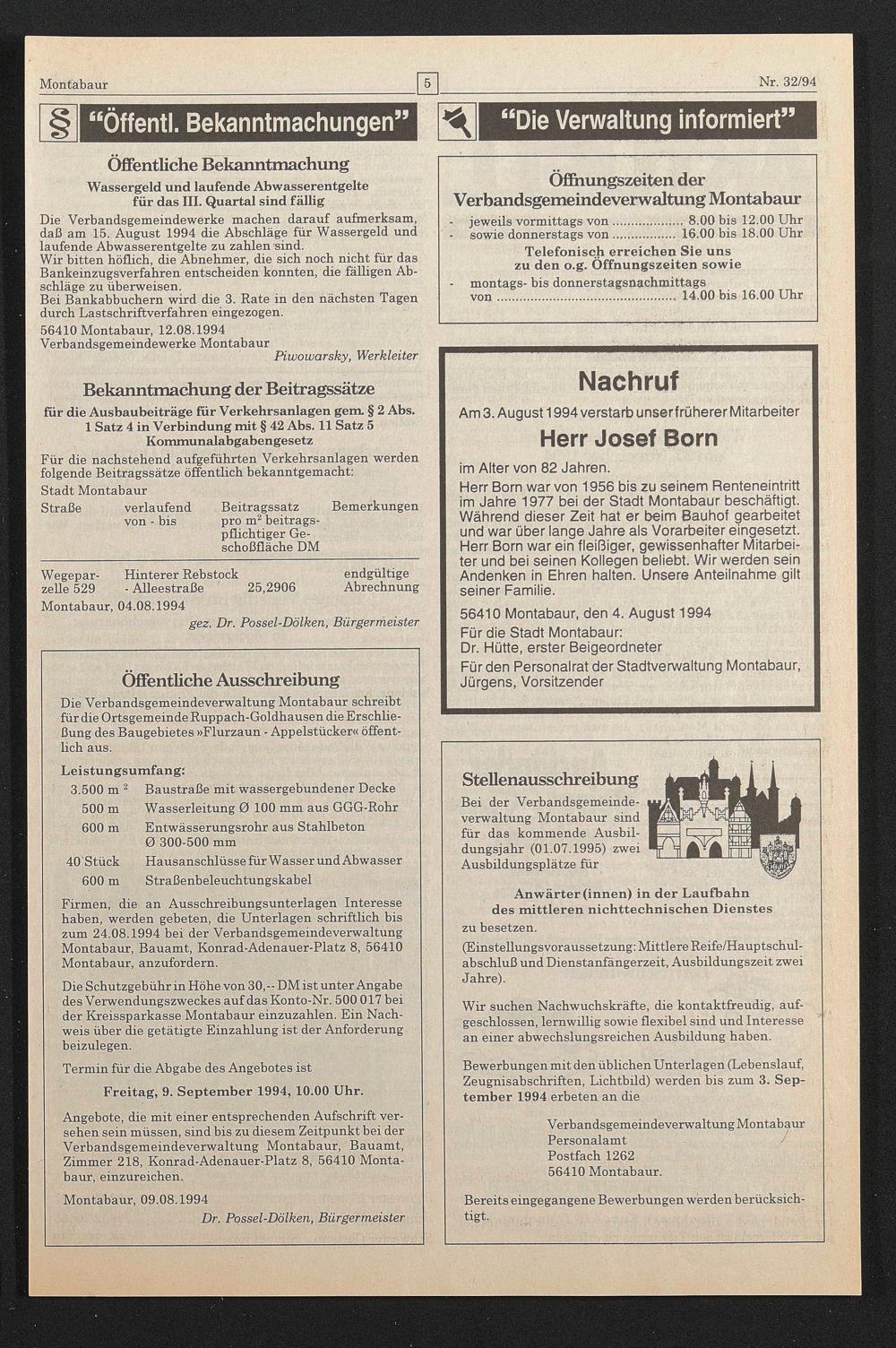56410 Montabaur, 12.08.1994 Verbandsgemeindewerke Montabaur