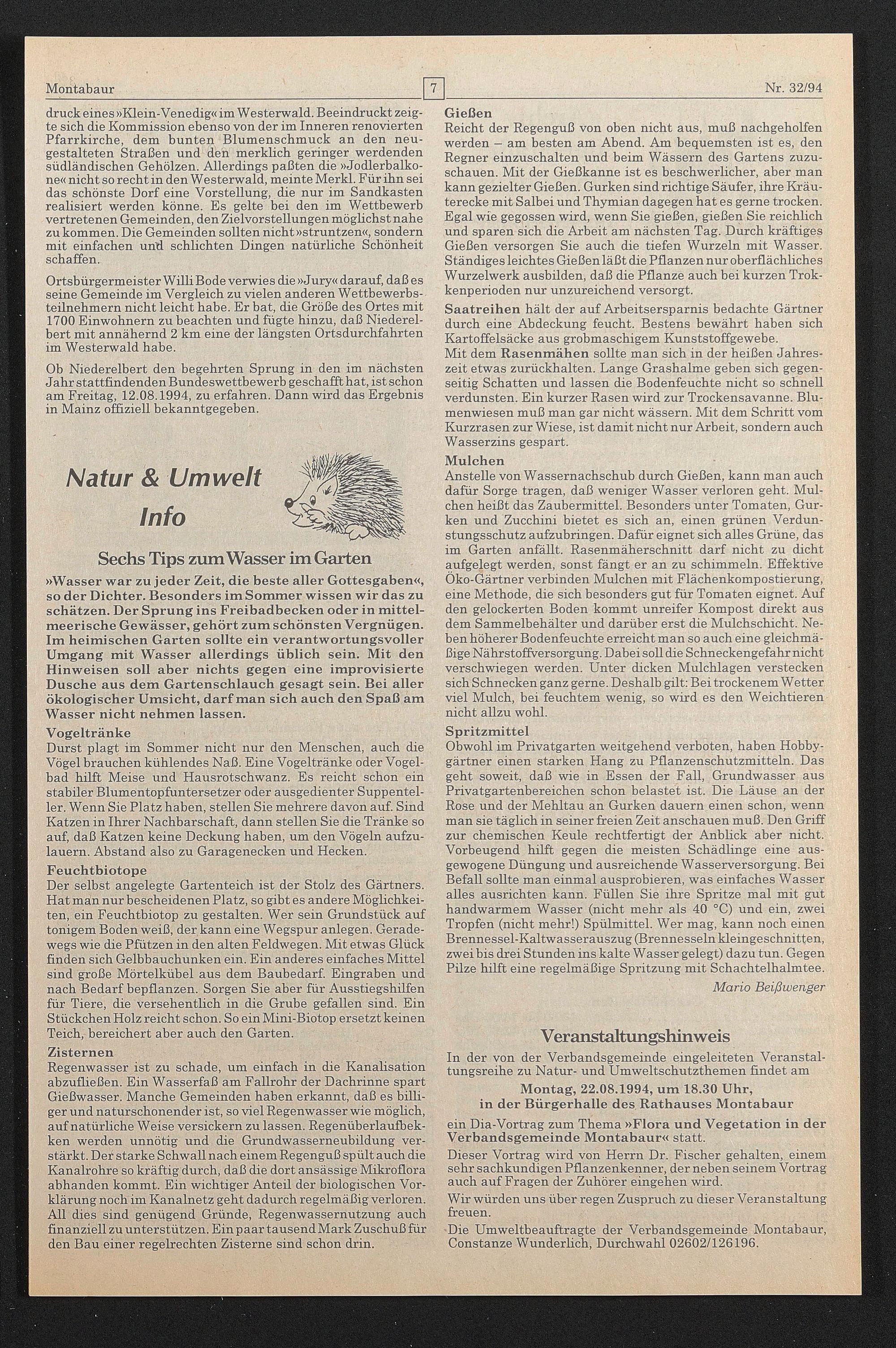 -Die Umweltbeauftragte der Verbandsgemeinde Montabaur, Constanze Wunderlich, Durchwahl 02602/126196.