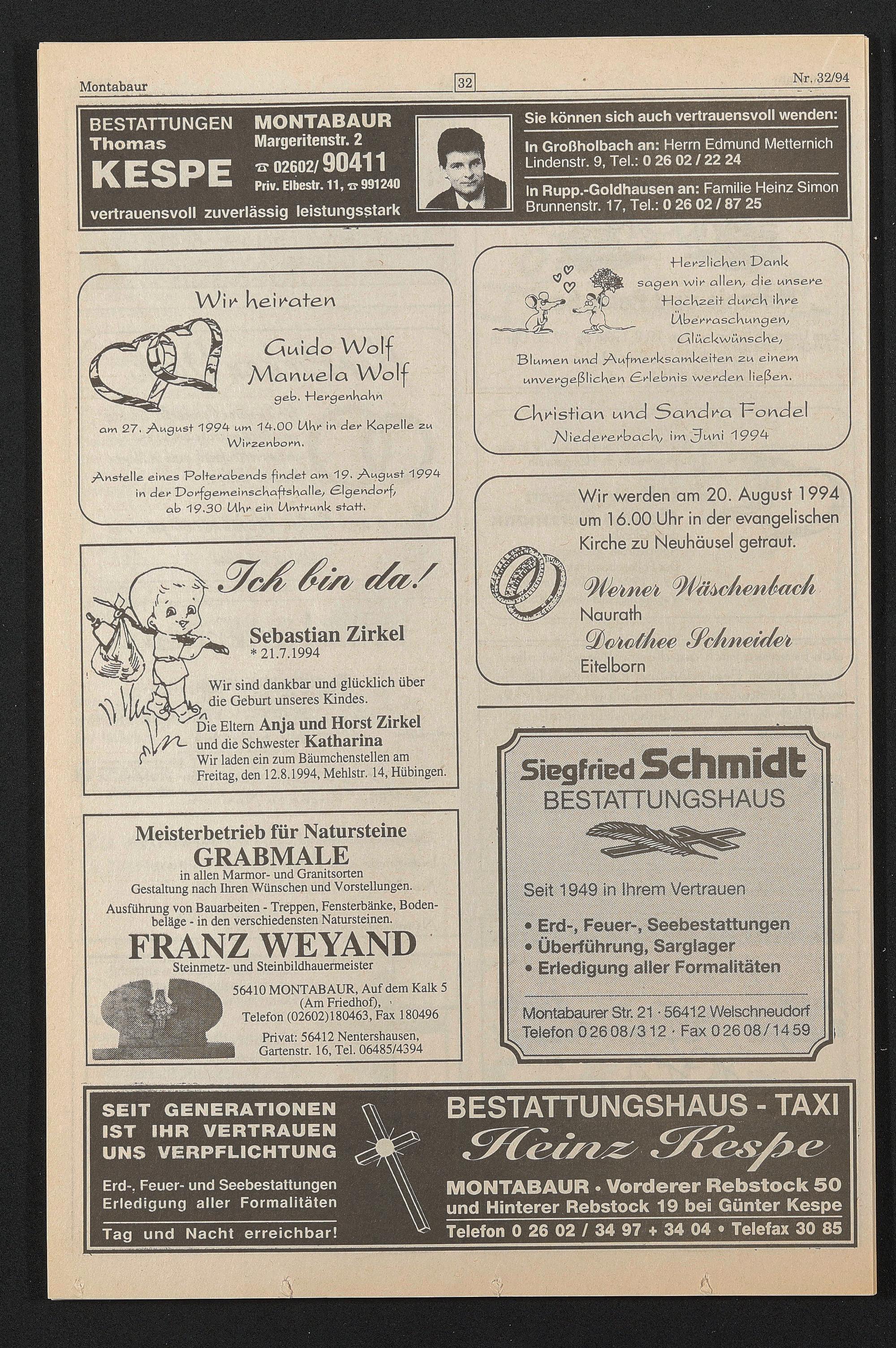 am 27. August 1994 um 14.00 lAkt“ in den Kapelle zu Winz enbcmn.