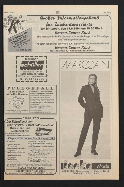 am Mittwoch, den 17.8.1994 um 18.30 Uhr im