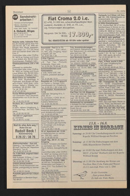 wöchentlich in Bendorf-Sayn Tel. 68 20