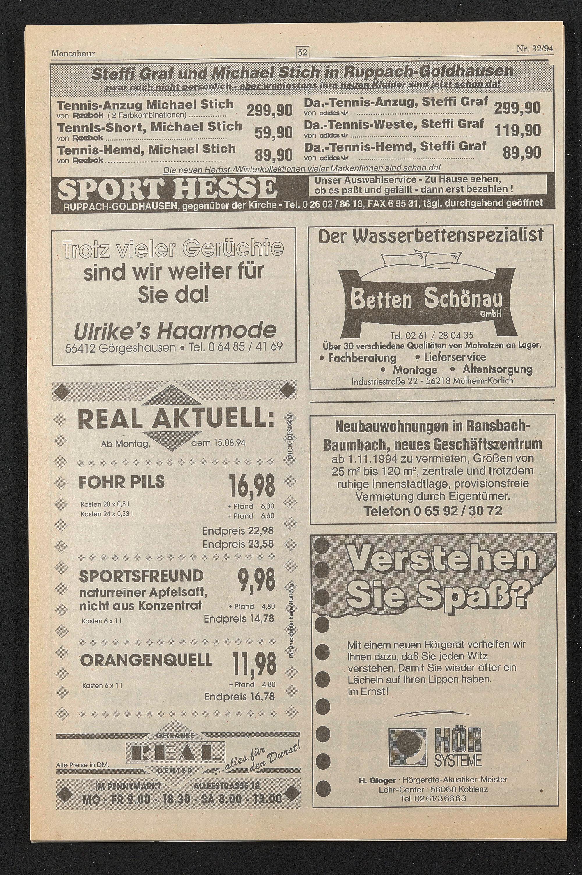 RUPPACH-GOLDHAUSEN, gegenüber der Kirche - Tel. 0 26 02 / 86 18, FAX 6 95 31, tägl. durchgehend geöffnet
