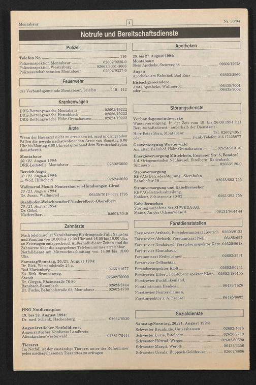 der Verbandsgemeinde Montabaur, Telefon.110 - 112
