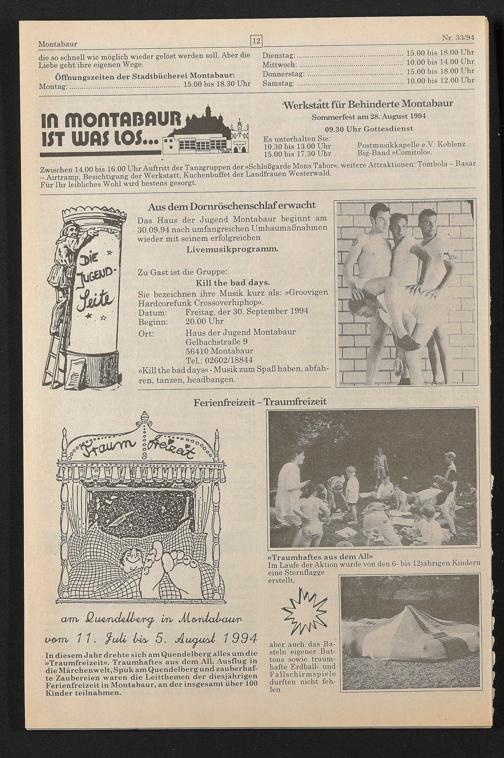 Das Haus der Jugend Montabaur beginnt am 30.09.94 nach umfangreichen Umbaumaßnahmen wieder mit seinem erfolgreichen