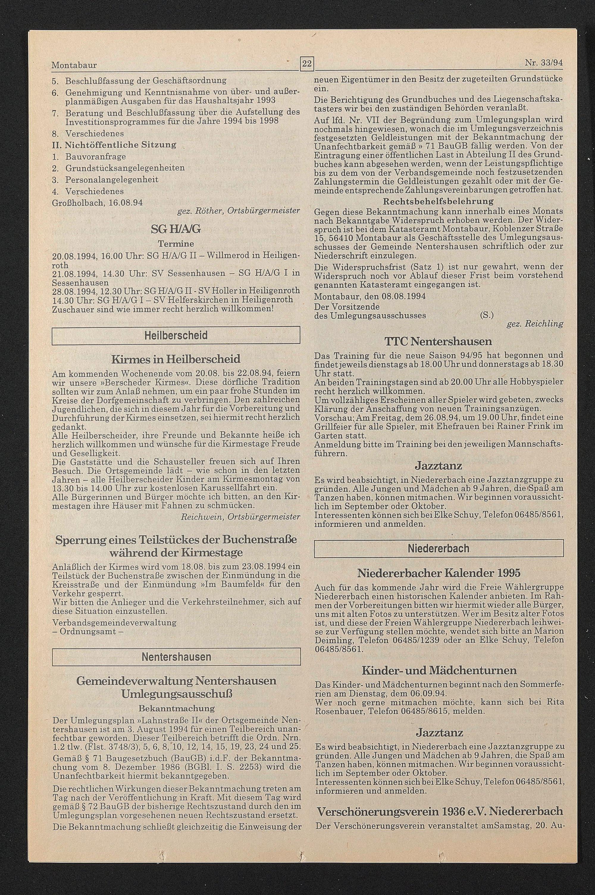 Montabaur, den 08.08.1994 Der Vorsitzende