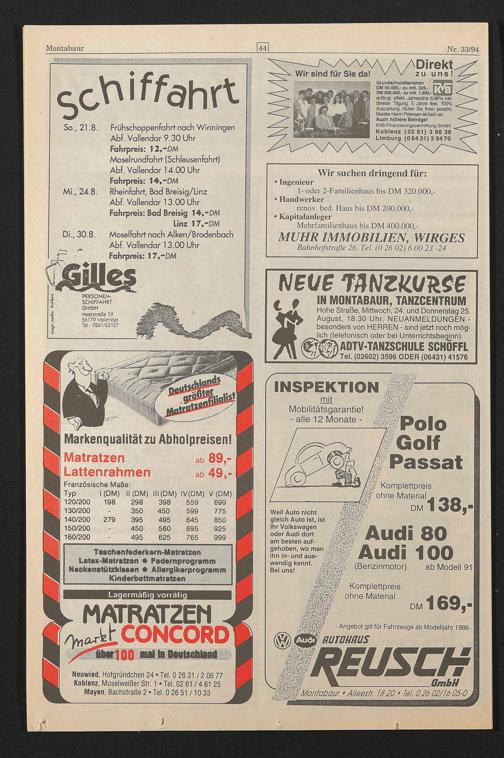 Abf. Vallendar 14.00 Uhr Fahrpreis: 14 ,-DM