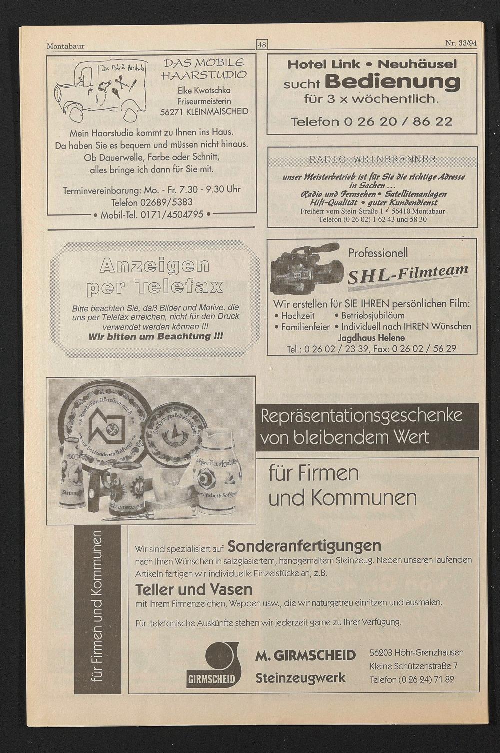 Freiherr vom Stein-Straße 1 ( 56410 Montabaur Telefon (0 26 02) 1 62 43 und 58 30