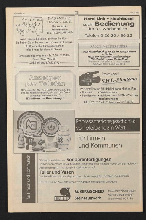 56203 Höhr-Grenzhausen Kleine Schützenstraße 7 Telefon (0 26 24) 71 82