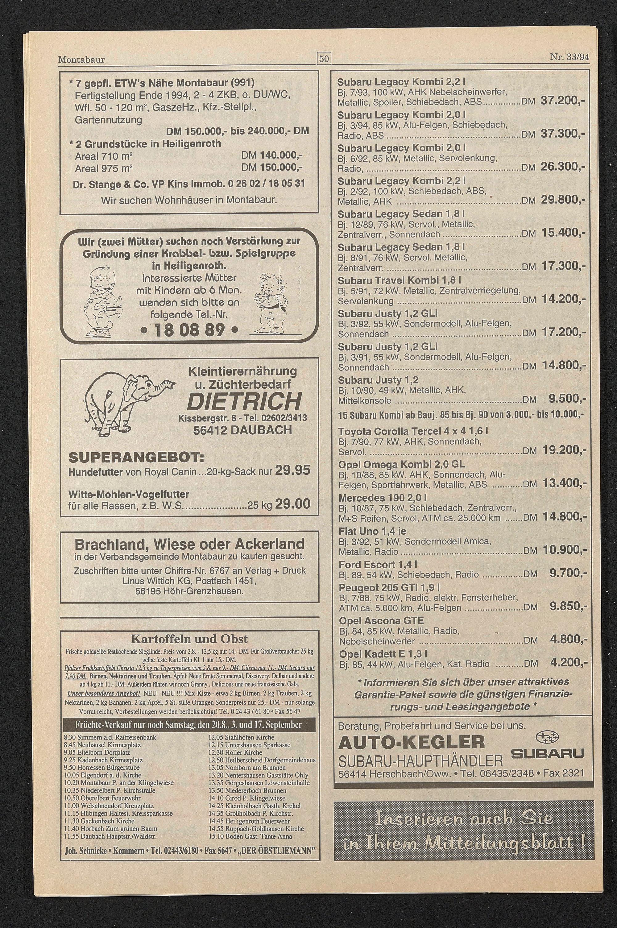 Inserieren, auek Sie ln Ikrem Mitteilungsblatt !