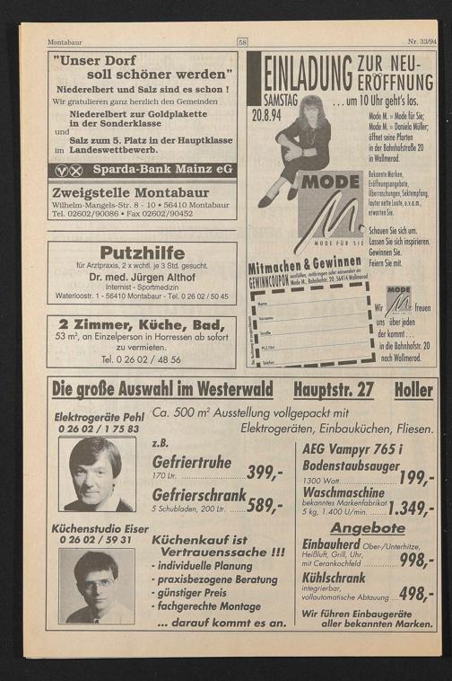 ■ SAMSTAG ... um 10 Uhr geht's los. 20 . 8.94 Xh Mode M. = Mode für Sie;