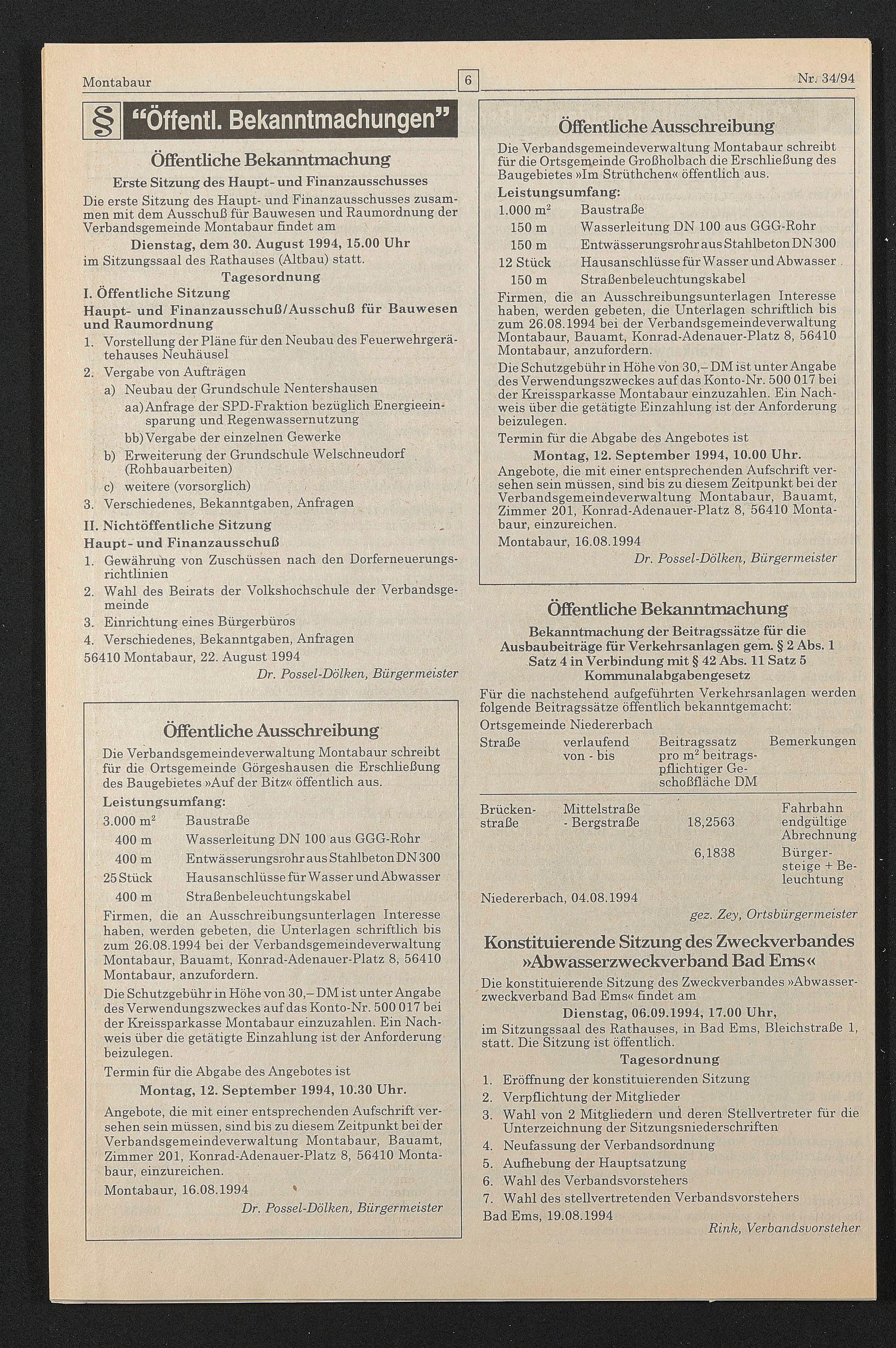 4. Verschiedenes, Bekanntgaben, Anfragen 56410 Montabaur, 22. August 1994